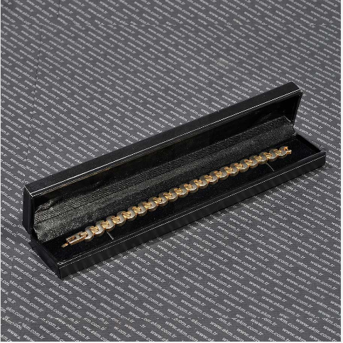- Kutumuz siyah renkli deri kaplama, gümüş yaldız desen işlemeli, iç kısmı siyah özel kadife kumaş ve astar kaplıdır. Bileklik, künye için hazırlanmış özel yuvaları vardır. (220x40x25 mm)
